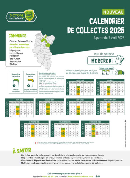 Dans Actualités‚ Environnement‚ Services Déchets : nouveau calendrier de collecte à partir du 7 avril
