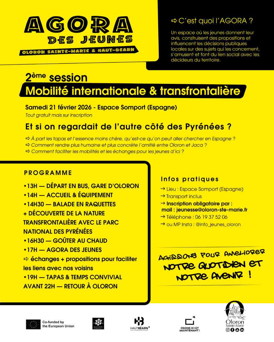 Agora des jeunes – 2e session+ Ajouter à mon Agenda Google+ Exporter vers iCal Date21 Fév 2026 Heure 13h00 - 22h00 Catégorie Je participe JeunesseProchain Événement « Bullez à la Confluence » 4e édition du prix littéraire BD du Haut-Béarn Date04 Nov 2025 - 30 Mai 2026 Heure Toute la journéePartagez cet événement