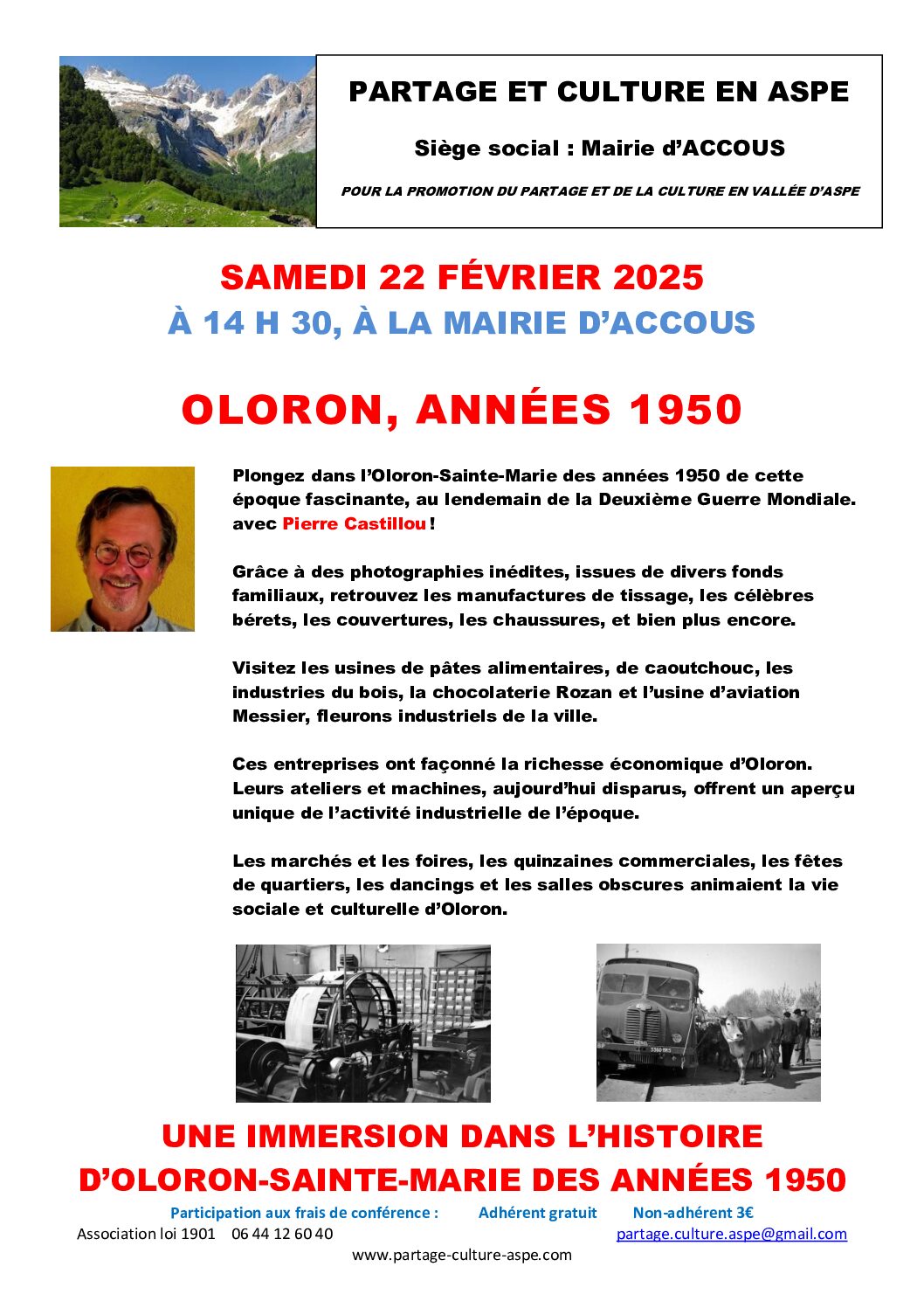 Conférence IMMERSION DANS L’HISTOIRE D’OLORON-SAINTE-MARIE DES ANNÉES 1950