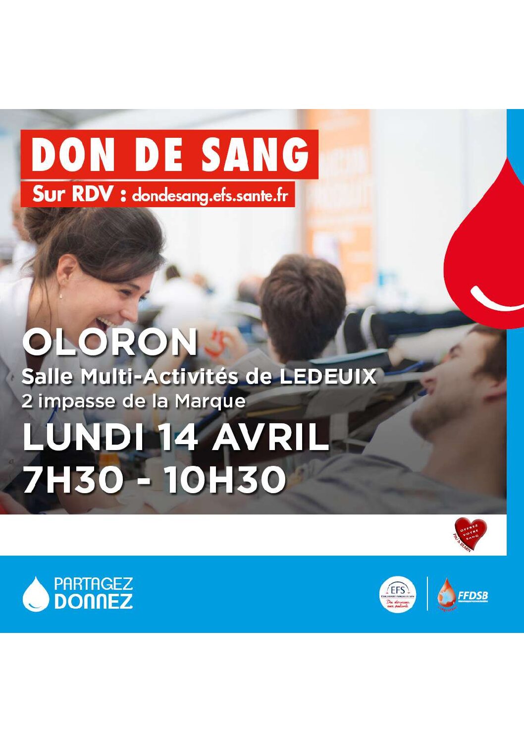 Don de sang+ Ajouter à mon Agenda Google+ Exporter vers iCal Date14 Avr 2025Evénements éxpirés Heure 7h30 - 10h30 LieuSalle Multi-Activités de Ledeuix2 impasse de la Marque 64400 LEDEUIX Catégorie Je participe SantéProchain Événement « Bullez à la Confluence » 4e édition du prix littéraire BD du Haut-Béarn Date04 Nov 2025 - 30 Mai 2026 Heure Toute la journéePartagez cet événement