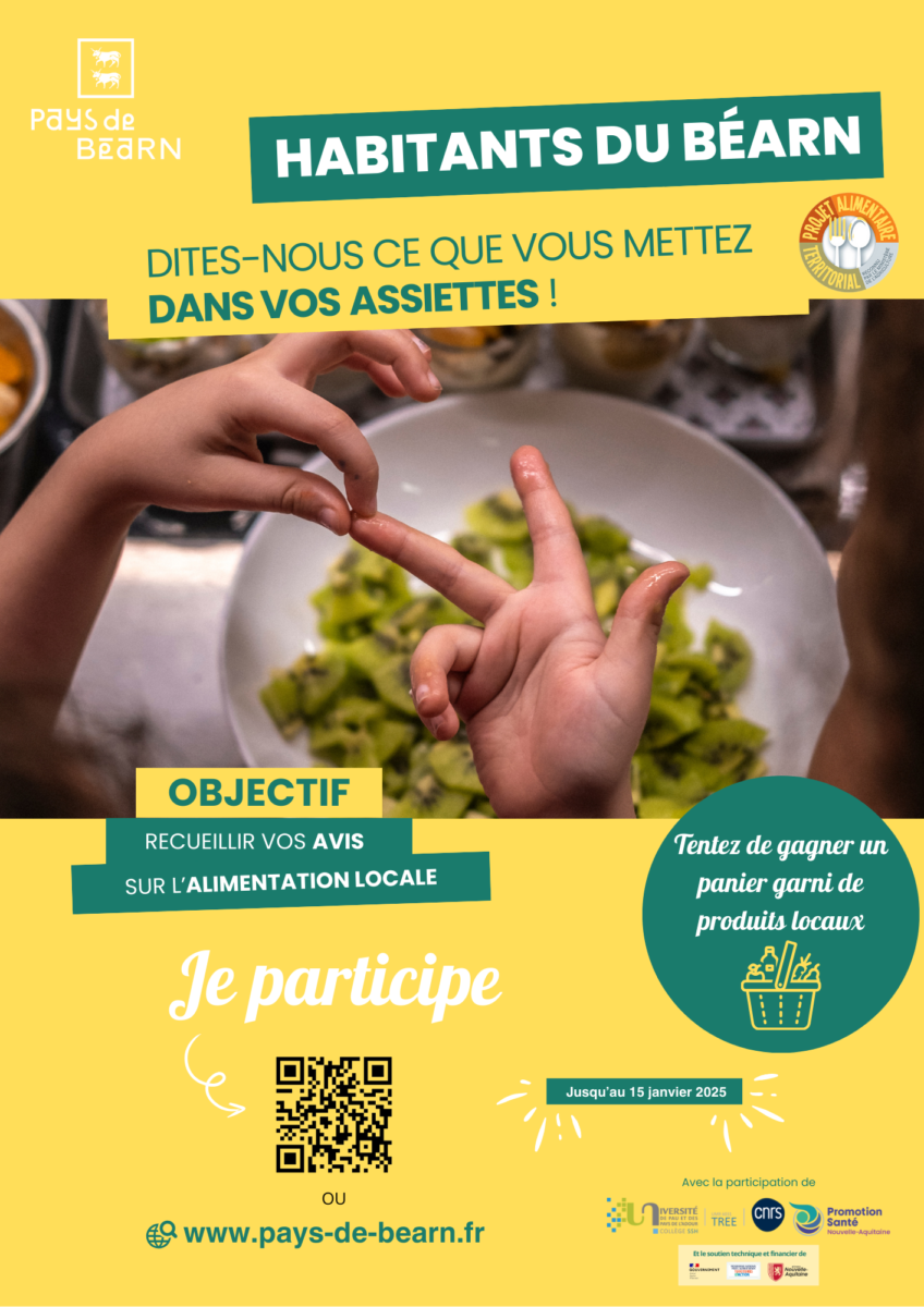 Enquête sur les habitudes alimentaires des BéarnaisRépondre à l’enquête+ Ajouter à mon Agenda Google+ Exporter vers iCal Date03 - 15 Jan 2025Evénements éxpirés Heure Toute la journée Catégorie Je participe SantéProchain Événement « Bullez à la Confluence » 4e édition du prix littéraire BD du Haut-Béarn Date04 Nov 2025 - 30 Mai 2026 Heure Toute la journéePartagez cet événement