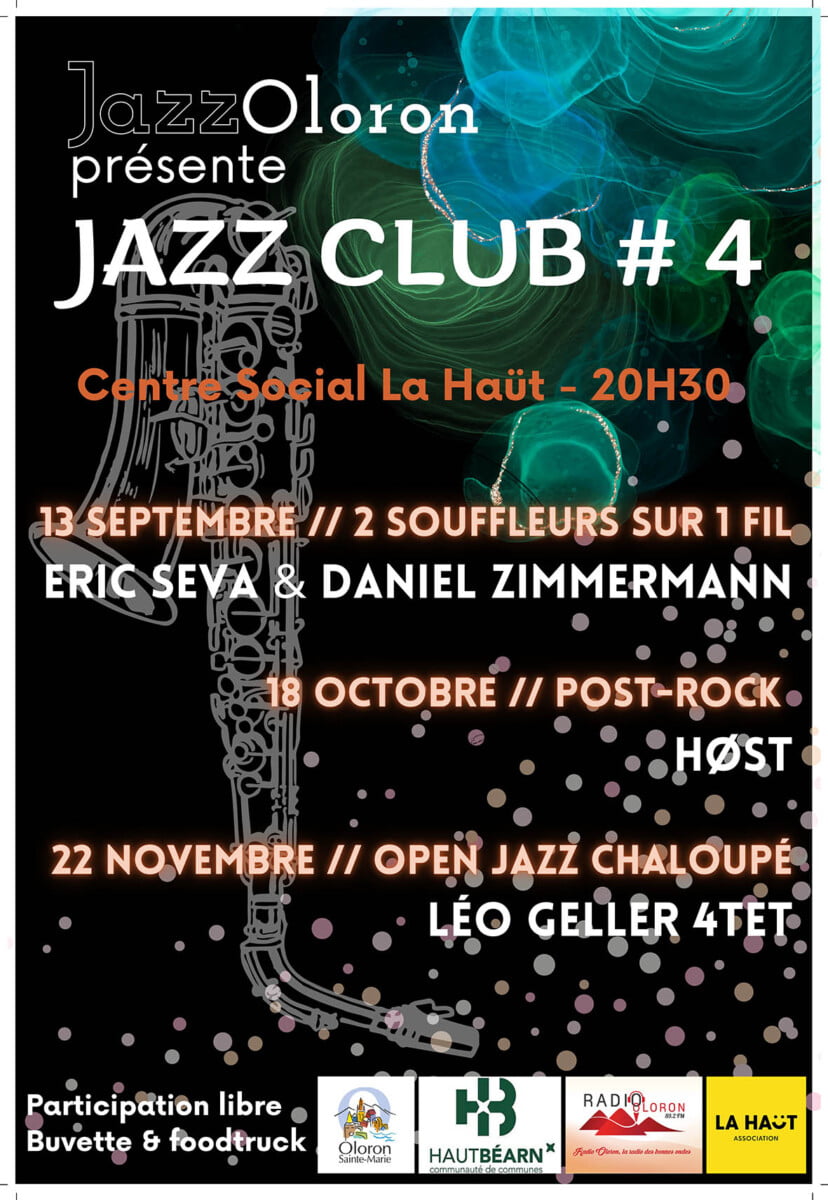 Léo Geller Quartet au Jazz Club+ Ajouter à mon Agenda Google+ Exporter vers iCal Date22 Nov 2024Evénements éxpirés Heure 20h30 LieuCentre Social La HaütCentre Social La Haüt Catégorie Culture SpectaclesProchain Événement « Bullez à la Confluence » 4e édition du prix littéraire BD du Haut-Béarn Date04 Nov 2025 - 30 Mai 2026 Heure Toute la journéePartagez cet événement