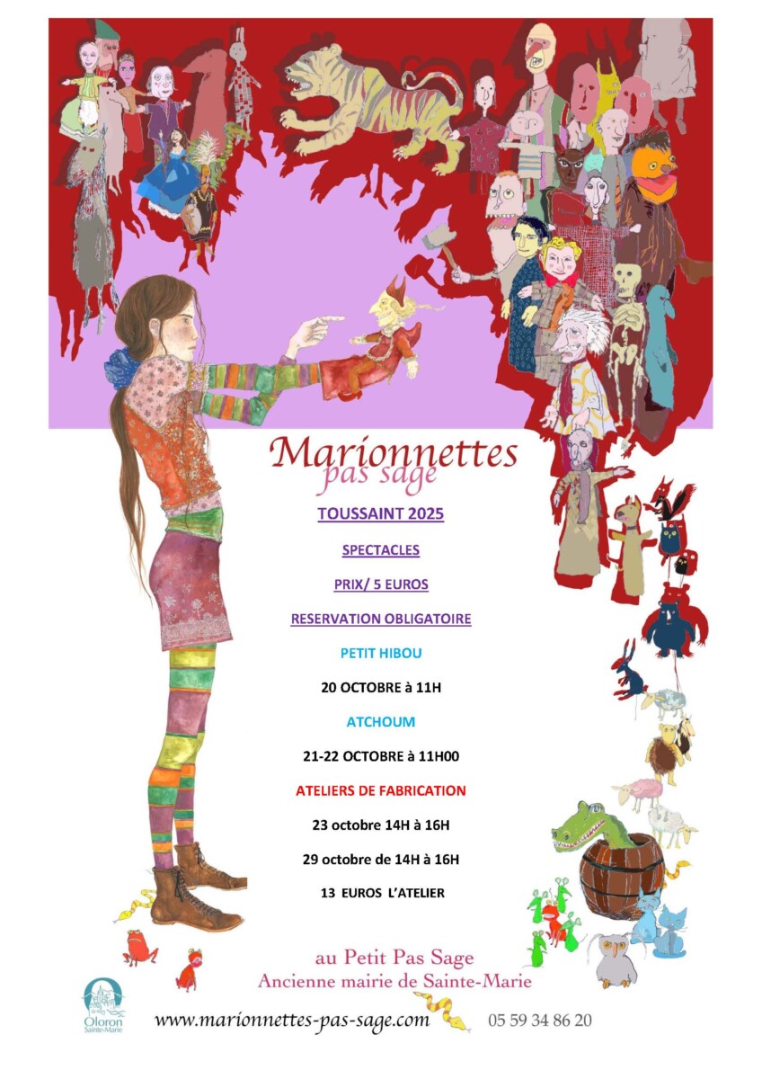 Marionnettes Pas Sage+ Ajouter à mon Agenda Google+ Exporter vers iCal Date20 - 29 Oct 2025Evénements éxpirés Heure Toute la journée LieuLe Petit Pas SageAncienne mairie de Sainte-Marie Catégorie Culture Jeunesse SpectaclesProchain Événement « Bullez à la Confluence » 4e édition du prix littéraire BD du Haut-Béarn Date04 Nov 2025 - 30 Mai 2026 Heure Toute la journéePartagez cet événement
