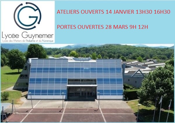 Portes ouvertes Lycée Guynemer+ Ajouter à mon Agenda Google+ Exporter vers iCal Date28 Mar 2026 Heure 9h00 - 12h00 Catégorie JeunesseProchain Événement « Bullez à la Confluence » 4e édition du prix littéraire BD du Haut-Béarn Date04 Nov 2025 - 30 Mai 2026 Heure Toute la journéePartagez cet événement