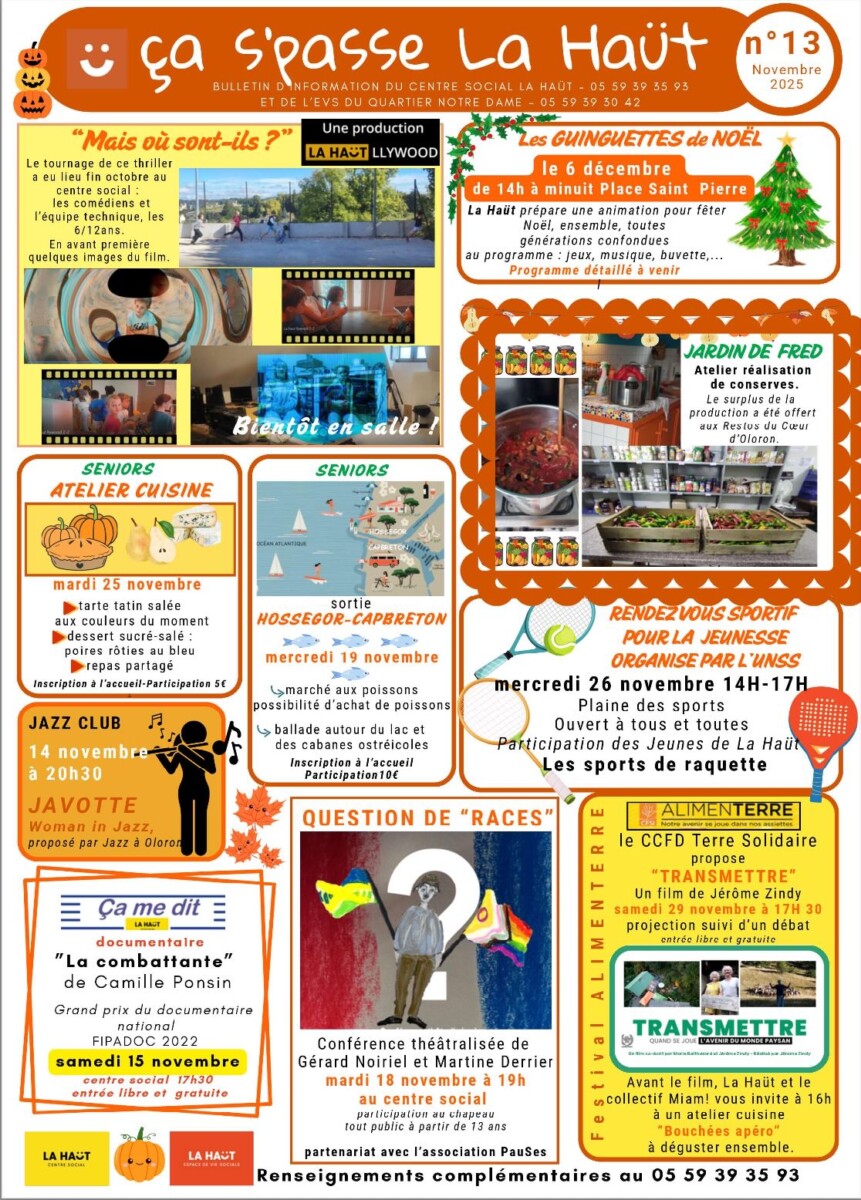Programme « ça s’passe La Haüt » novembre+ Ajouter à mon Agenda Google+ Exporter vers iCal Date01 - 30 Nov 2025En cours... Heure Toute la journée Catégorie Culture Je participe Jeunesse Spectacles SportsProchain Événement Exposition « L’art chrétien, de l’obscurité à la clarté » Date25 Oct 2025 - 15 Nov 2025 Heure Toute la journéePartagez cet événement
