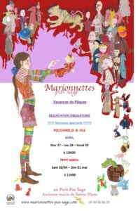Voici le programme des représentations des « Marionnettes pas sage » pendant les vacances de Pâques.