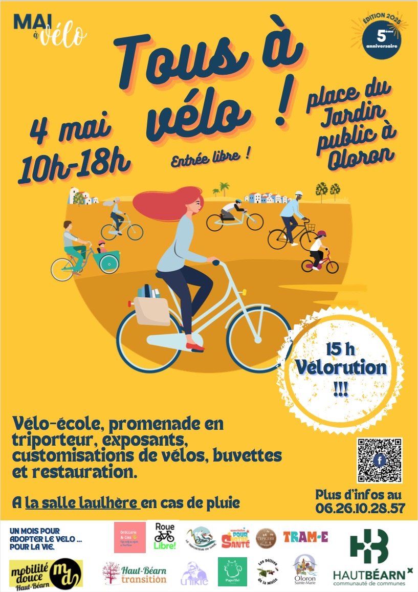 Tous à vélo !+ Ajouter à mon Agenda Google+ Exporter vers iCal Date04 Mai 2025Evénements éxpirés Heure 10h00 - 18h00 LieuJardin PublicJardin Public Catégorie Je participe Santé SportsProchain Événement « Bullez à la Confluence » 4e édition du prix littéraire BD du Haut-Béarn Date04 Nov 2025 - 30 Mai 2026 Heure Toute la journéePartagez cet événement